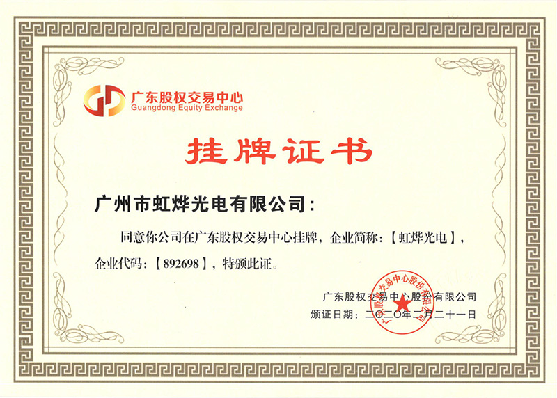 热烈祝贺虹烨光电在广州股权交易中心挂牌